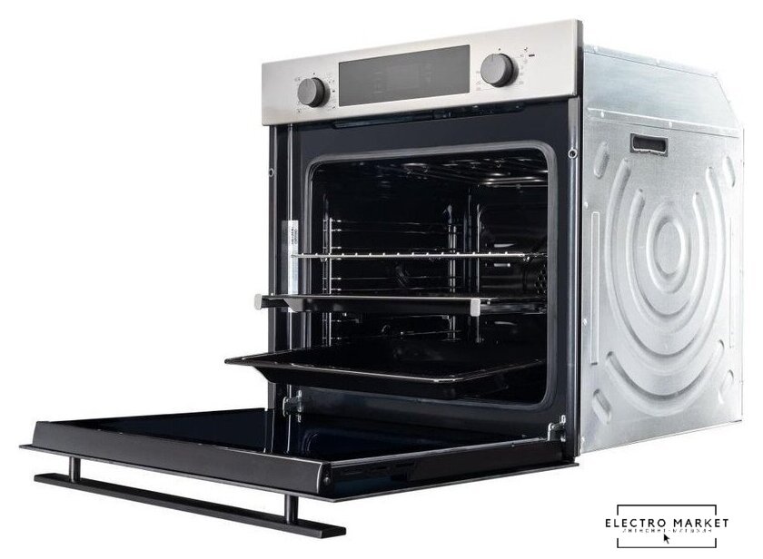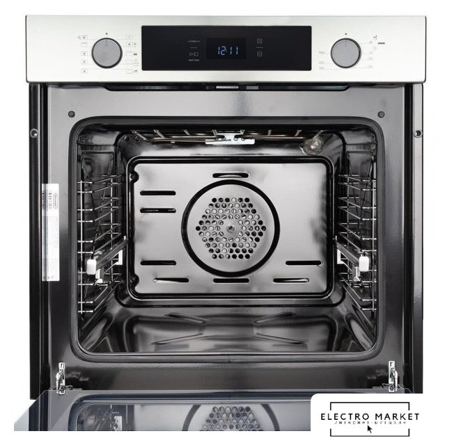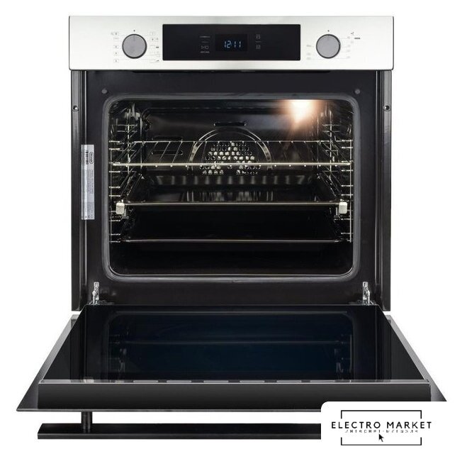 электрический с конвекцией, приготовление на пару, объем 72 л, утапливаемые переключатели, 11 режимов, очистка каталитическая + паровая, 3 стекла в дверце, направляющие проволочные + телескопические (1 уровень)