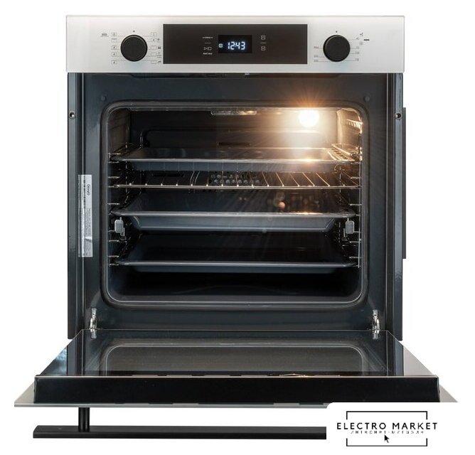 электрический с конвекцией, объем 60 л, 10 режимов, очистка паровая, 3 стекла в дверце, направляющие проволочные