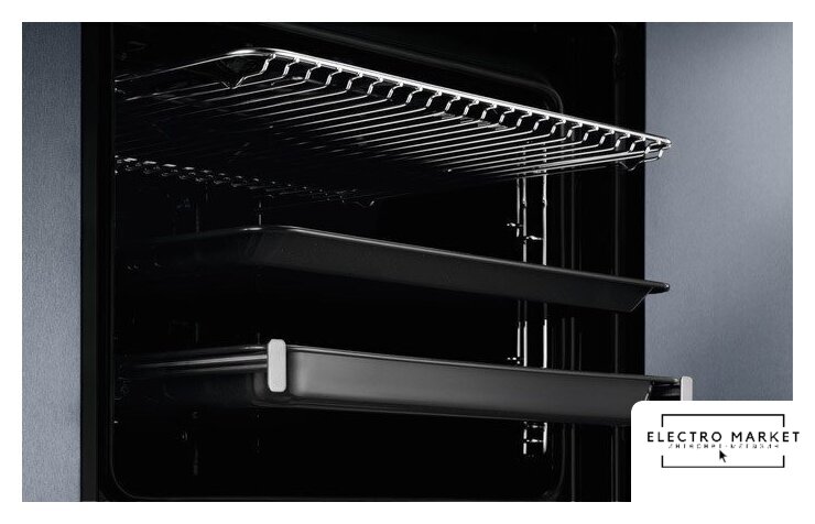 электрический с конвекцией, объем 81 л, утапливаемые переключатели, 9 режимов, очистка каталитическая + пиролитическая, 3 стекла в дверце, направляющие проволочные + телескопические (1 уровень)