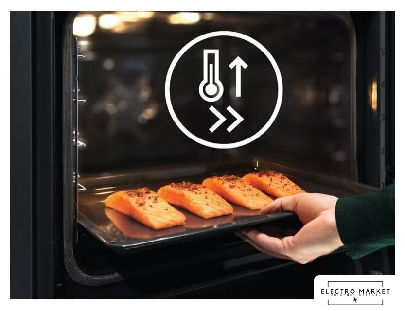 электрический с конвекцией, приготовление на пару, объем 77 л, 22 режима, автопрограммы, очистка каталитическая, 3 стекла в дверце, направляющие проволочные + телескопические (2 уровня), термощуп