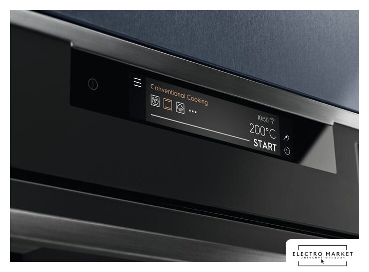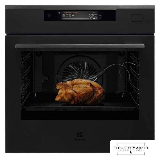 электрический с конвекцией, объем 70 л, 18 режимов, очистка пиролитическая/паровая, проволочные направляющие, телескопические направляющие, термощуп, энергопотребление A+