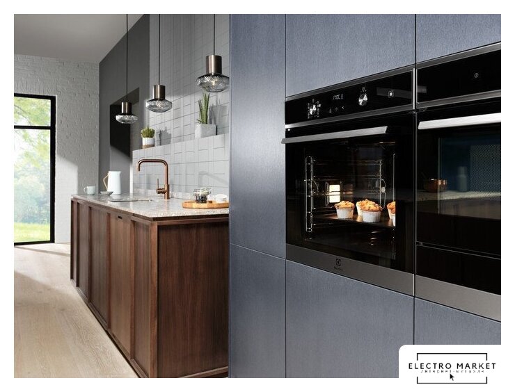 электрический с конвекцией, объем 76 л, 11 режимов, автопрограммы, очистка каталитическая + паровая, 2 стекла в дверце, направляющие проволочные