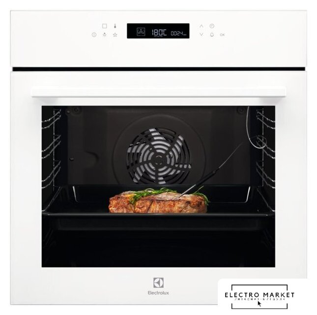 электрический с конвекцией, объем 72 л, автопрограммы, очистка пиролитическая, 3 стекла в дверце, направляющие проволочные + телескопические (1 уровень), термощуп