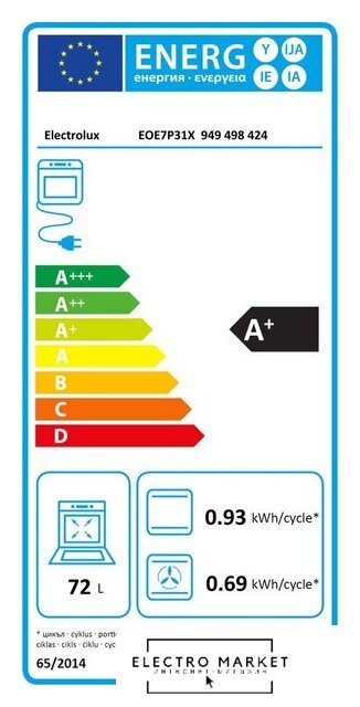 электрический с конвекцией, объем 72 л, 11 режимов, автопрограммы, очистка каталитическая, 3 стекла в дверце, направляющие проволочные + телескопические (1 уровень), термощуп
