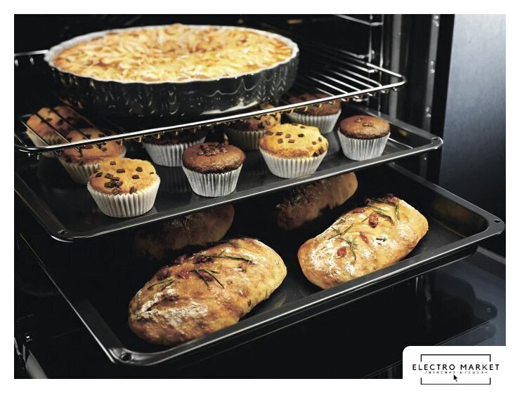 электрический с конвекцией, объем 77 л, 6 режимов, очистка ручная, 2 стекла в дверце, направляющие проволочные + телескопические (1 уровень)