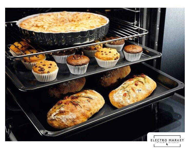 электрический с конвекцией, объем 60 л, 10 режимов, очистка паровая, 3 стекла в дверце, направляющие проволочные