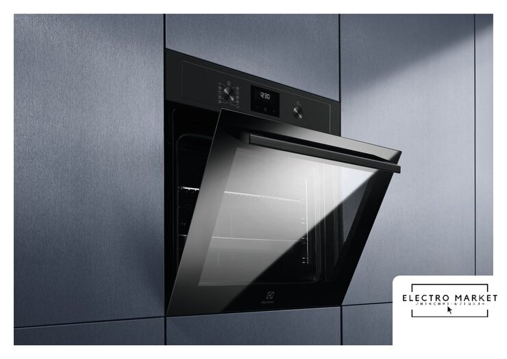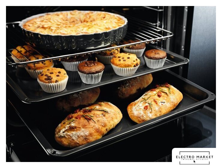 электрический с конвекцией, объем 70 л, 9 режимов, очистка паровая, 2 стекла в дверце, направляющие проволочные + телескопические (1 уровень)