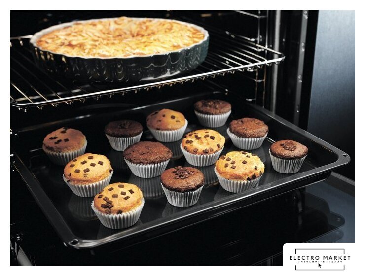 электрический с конвекцией, объем 76 л, 9 режимов, очистка каталитическая, проволочные направляющие, телескопические направляющие, энергопотребление A