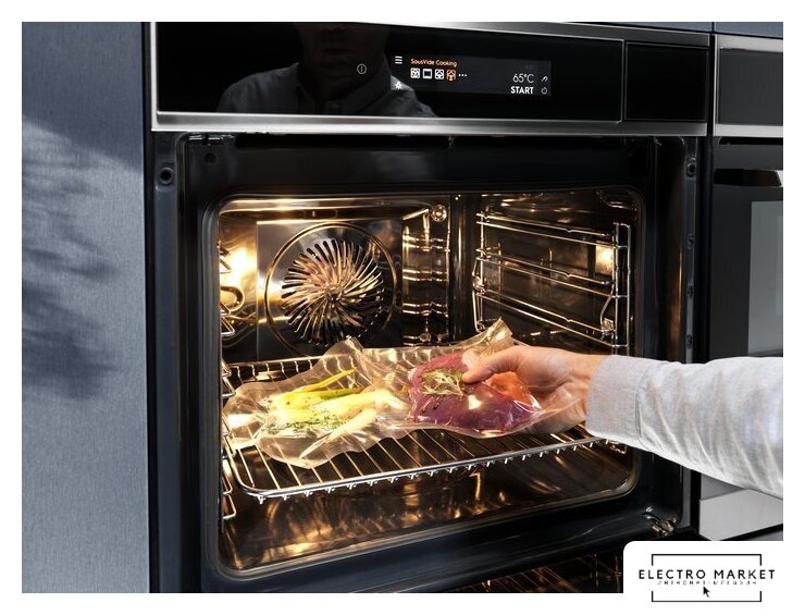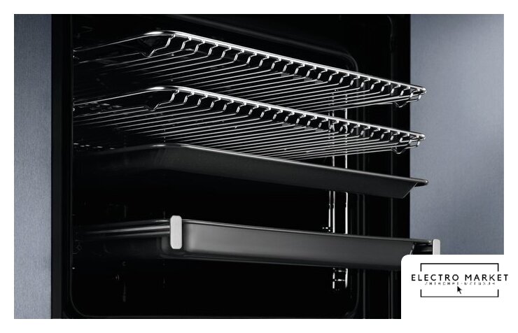 электрический с конвекцией, объем 71 л, 14 режимов, очистка каталитическая + паровая, направляющие проволочные