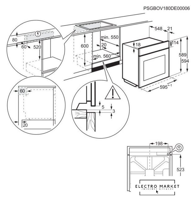 электрический с конвекцией, объем 60 л, 7 режимов, очистка каталитическая/паровая, проволочные направляющие, телескопические направляющие, энергопотребление A