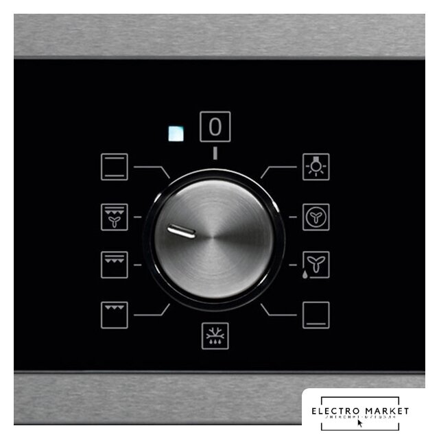 электрический с конвекцией, объем 72 л, утапливаемые переключатели, 9 режимов, очистка пиролитическая, 3 стекла в дверце, направляющие проволочные + телескопические (1 уровень)
