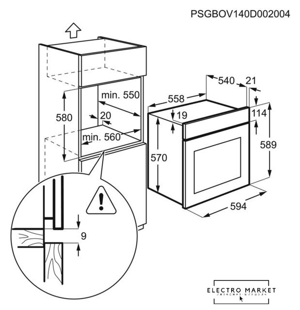 электрический с конвекцией, объем 76 л, 9 режимов, очистка каталитическая, проволочные направляющие, телескопические направляющие, энергопотребление A