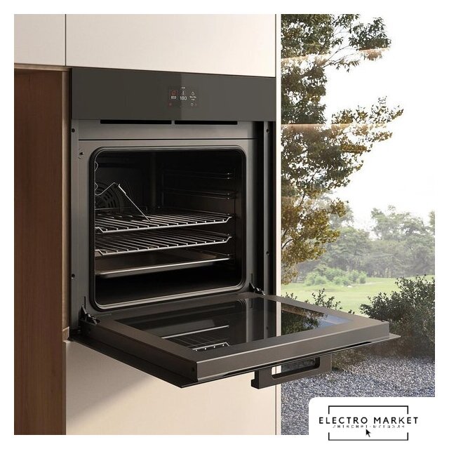 электрический с конвекцией, объем 68 л, 13 режимов, очистка паровая, 3 стекла в дверце, направляющие проволочные