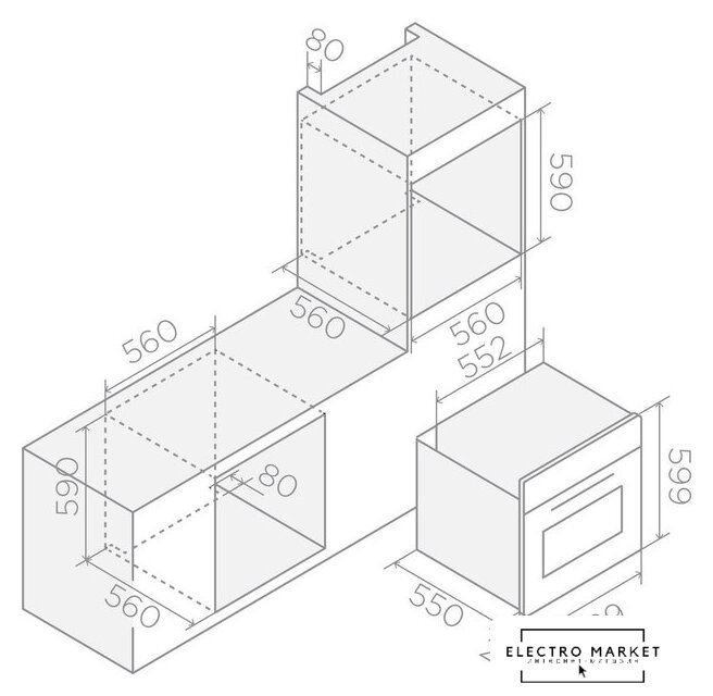 электрический с конвекцией, объем 71 л, 14 режимов, очистка каталитическая, направляющие проволочные