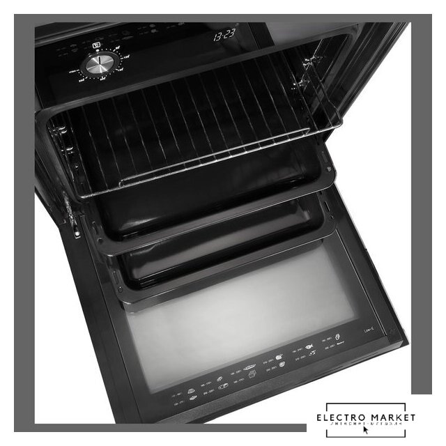 электрический с конвекцией, объем 52 л, 7 режимов, очистка ручная, 2 стекла в дверце, направляющие проволочные + телескопические (1 уровень)