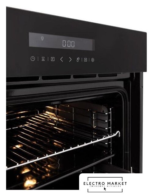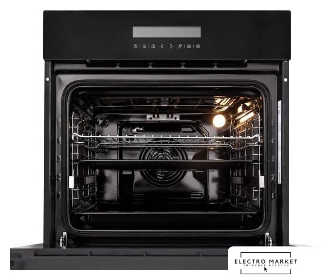 электрический с конвекцией, объем 70 л, утапливаемые переключатели, 9 режимов, очистка каталитическая, 3 стекла в дверце, направляющие проволочные + телескопические (2 уровня)