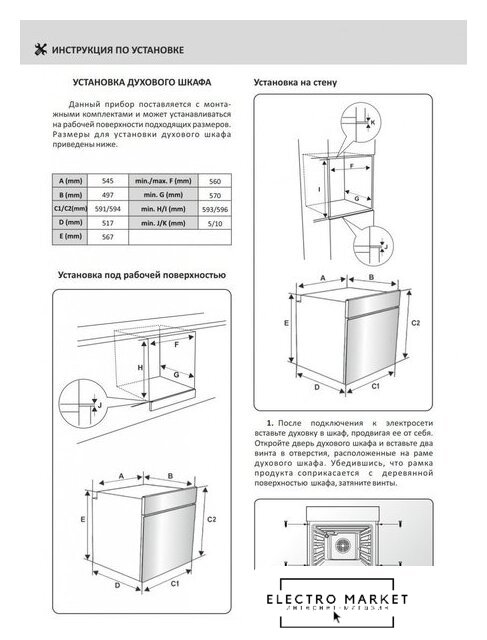 электрический с конвекцией, объем 64 л, 5 режимов, очистка ручная, 2 стекла в дверце, направляющие проволочные