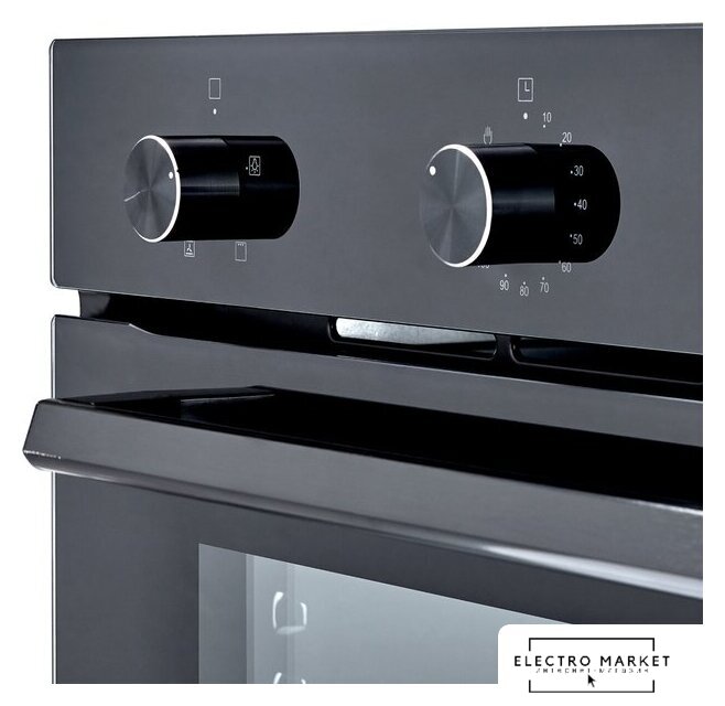 электрический с конвекцией, объем 58 л, утапливаемые переключатели, 7 режимов, очистка паровая, 2 стекла в дверце, направляющие рельефные