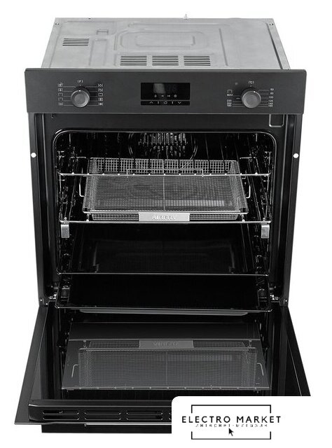 электрический с конвекцией, приготовление на пару, объем 77 л, утапливаемые переключатели, 12 режимов, очистка паровая, 2 стекла в дверце, направляющие проволочные