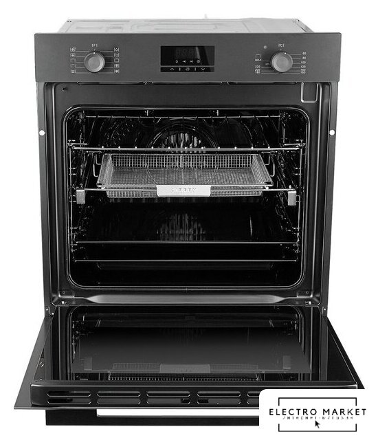электрический с конвекцией, объем 72 л, утапливаемые переключатели, 8 режимов, очистка каталитическая, 2 стекла в дверце, направляющие проволочные + телескопические (1 уровень), термощуп
