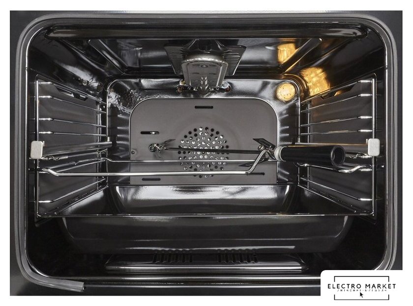 газовый с конвекцией, объем 58 л, ретродизайн, 5 режимов, очистка каталитическая, 2 стекла в дверце, направляющие проволочные