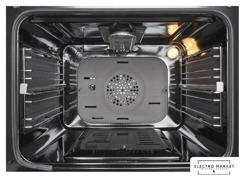 газовый с конвекцией, объем 59 л, 2 режима, очистка ручная/каталитическая/ручная (эмаль легкой очистки), проволочные направляющие, телескопические направляющие