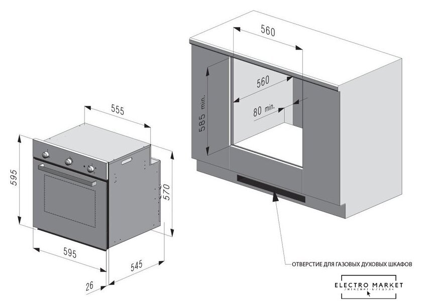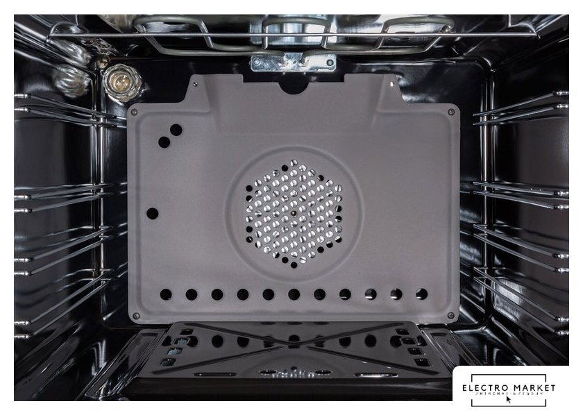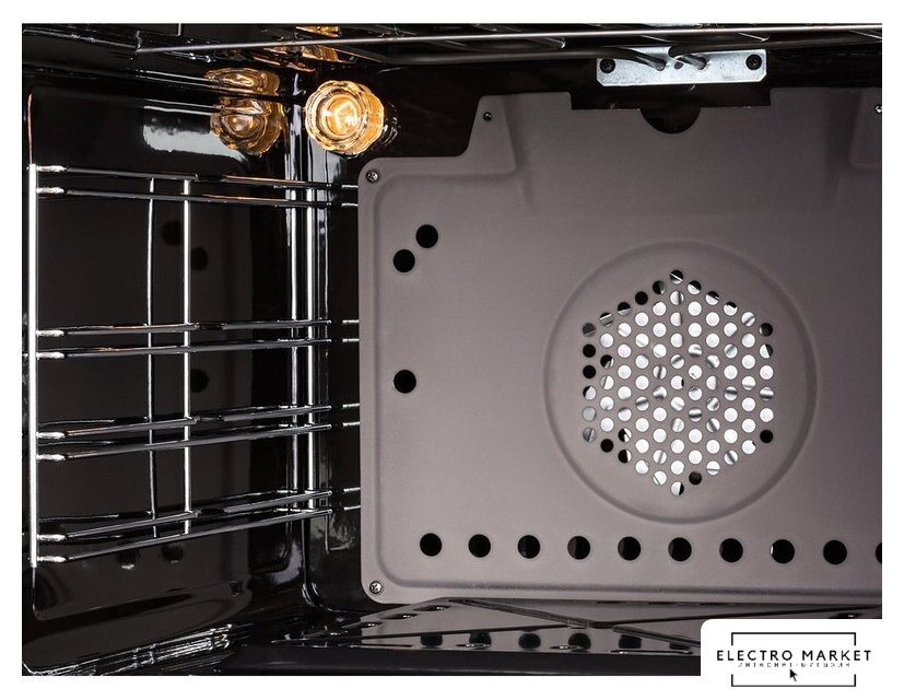 газовый с конвекцией, объем 58 л, 5 режимов, очистка каталитическая, 3 стекла в дверце, направляющие проволочные