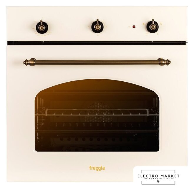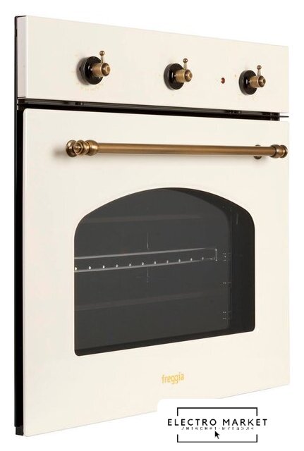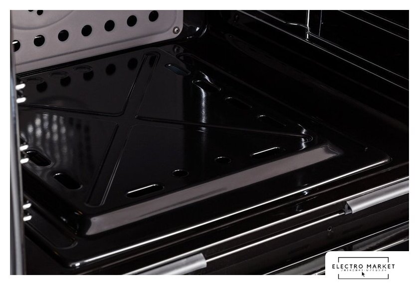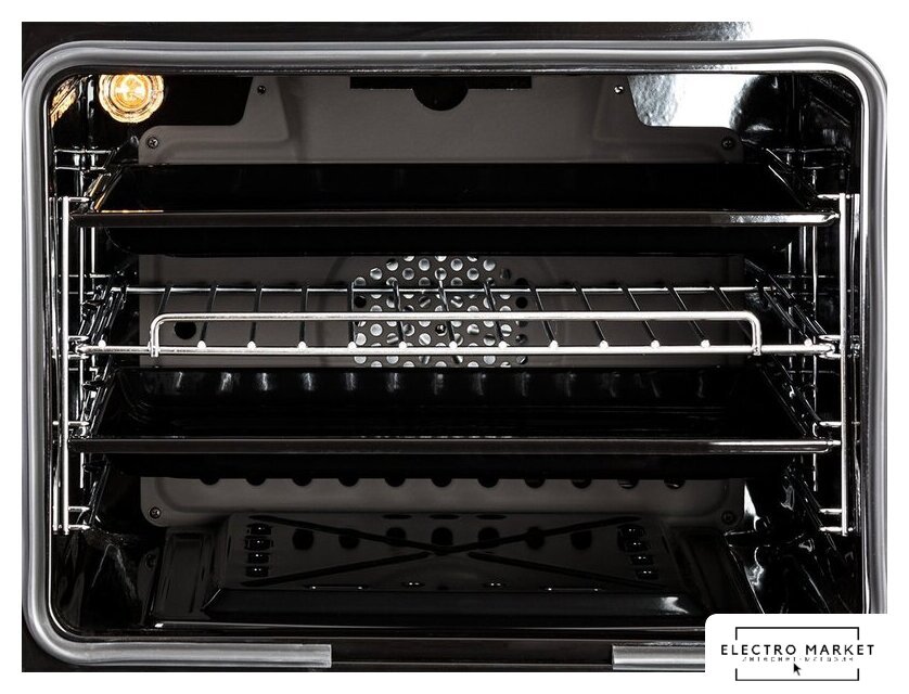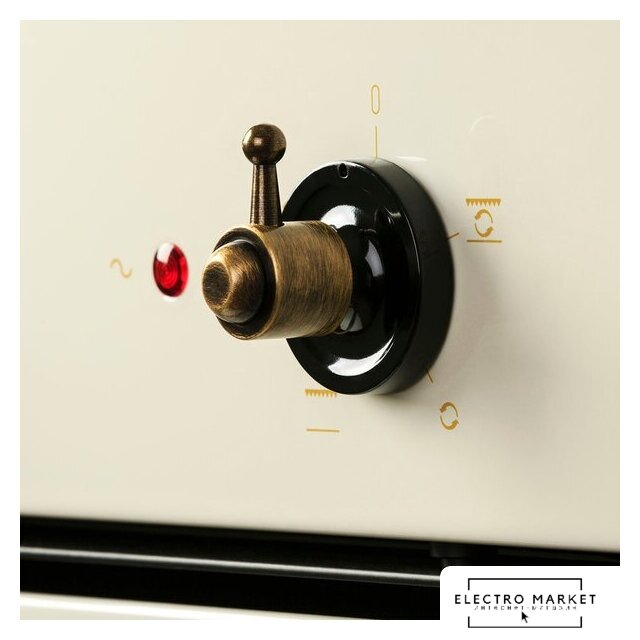 газовый с конвекцией, объем 67 л, ретродизайн, 5 режимов, очистка каталитическая, 3 стекла в дверце, направляющие проволочные + телескопические (1 уровень)