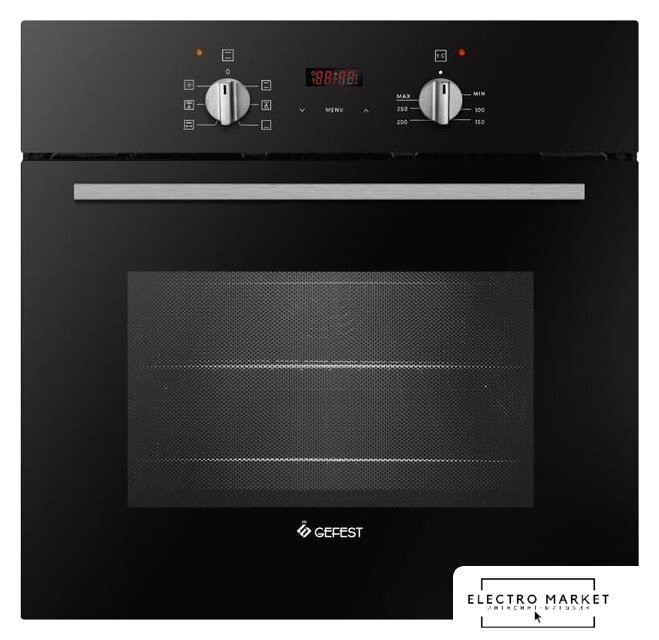 электрический с конвекцией, объем 60 л, утапливаемые переключатели, 8 режимов, очистка ручная, направляющие проволочные + телескопические