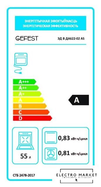 электрический с конвекцией, объем 72 л, 8 режимов, очистка паровая, 3 стекла в дверце, направляющие проволочные + телескопические (1 уровень)