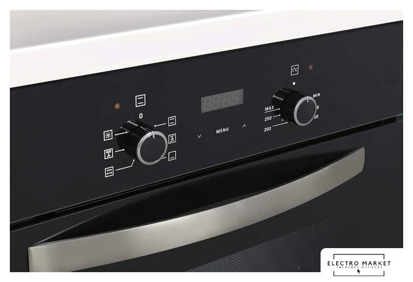 электрический с конвекцией, объем 50 л, утапливаемые переключатели, 8 режимов, очистка ручная, 3 стекла в дверце, направляющие проволочные