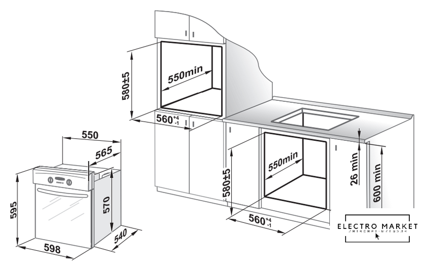 электрический с конвекцией, объем 77 л, 10 режимов, очистка паровая, проволочные направляющие, энергопотребление A