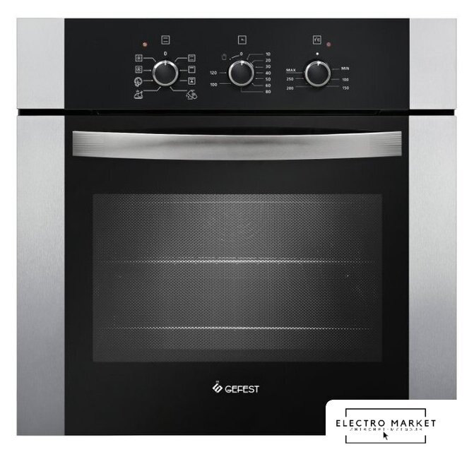электрический с конвекцией, объем 60 л, 6 режимов, очистка ручная, 2 стекла в дверце, направляющие проволочные