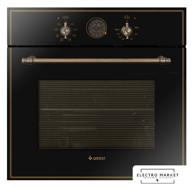 электрический с конвекцией, объем 60 л, 6 режимов, очистка ручная, 2 стекла в дверце, направляющие проволочные
