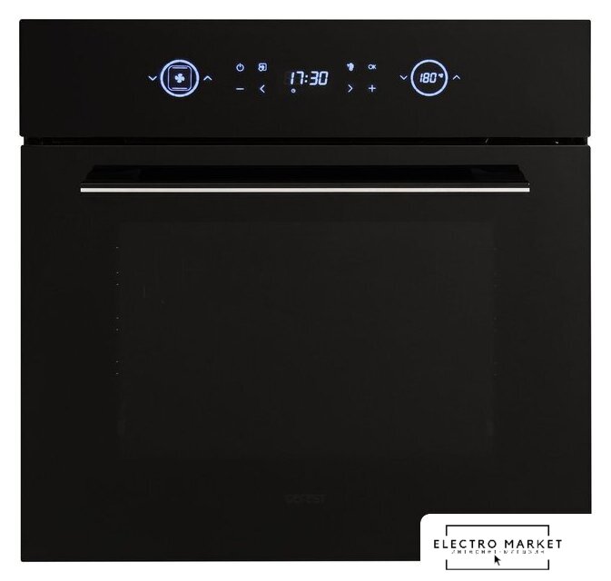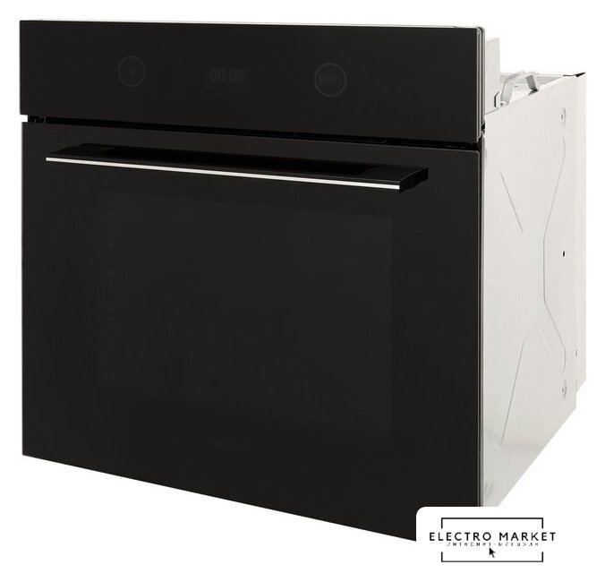 электрический с конвекцией, объем 60 л, утапливаемые переключатели, 6 режимов, очистка ручная, 3 стекла в дверце, направляющие рельефные