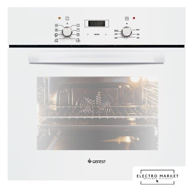 электрический с конвекцией, объем 55 л, 6 режимов, очистка ручная, направляющие проволочные + телескопические