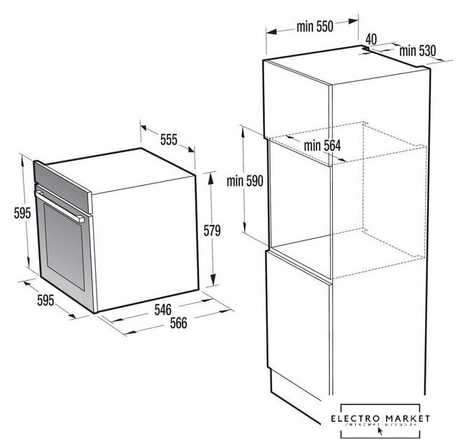 электрический с конвекцией, объем 71 л, 11 режимов, очистка пиролитическая, 4 стекла в дверце, направляющие проволочные, термощуп