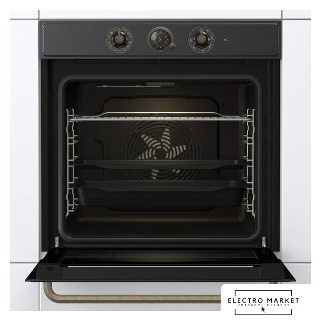 электрический с конвекцией, объем 74 л, 9 режимов, очистка ручная, 3 стекла в дверце, направляющие проволочные + телескопические