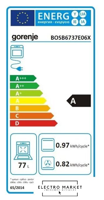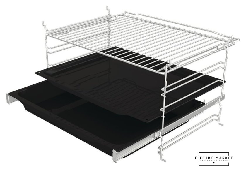электрический с конвекцией, объем 60 л, 7 режимов, очистка каталитическая/паровая, проволочные направляющие, телескопические направляющие, энергопотребление A