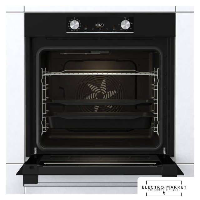 электрический с конвекцией, объем 78 л, утапливаемые переключатели, 6 режимов, очистка ручная, 3 стекла в дверце, направляющие проволочные (1 уровень)
