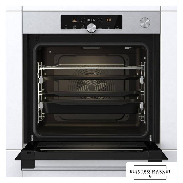 электрический с конвекцией, объем 77 л, 20 режимов, очистка каталитическая, 3 стекла в дверце, направляющие проволочные + телескопические (2 уровня), термощуп