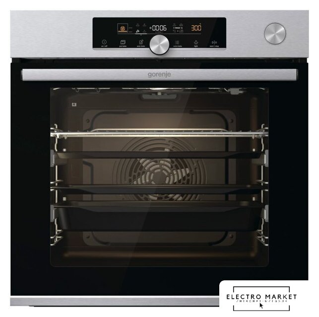 электрический с конвекцией, приготовление на пару, объем 72 л, утапливаемые переключатели, 9 режимов, очистка каталитическая, 2 стекла в дверце, направляющие проволочные + телескопические (1 уровень), термощуп