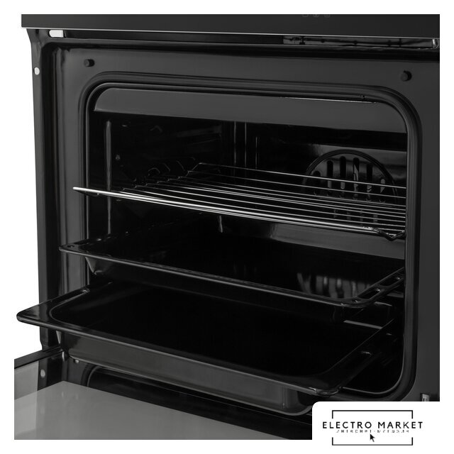 электрический с конвекцией, объем 58 л, 6 режимов, очистка ручная, 2 стекла в дверце, направляющие проволочные
