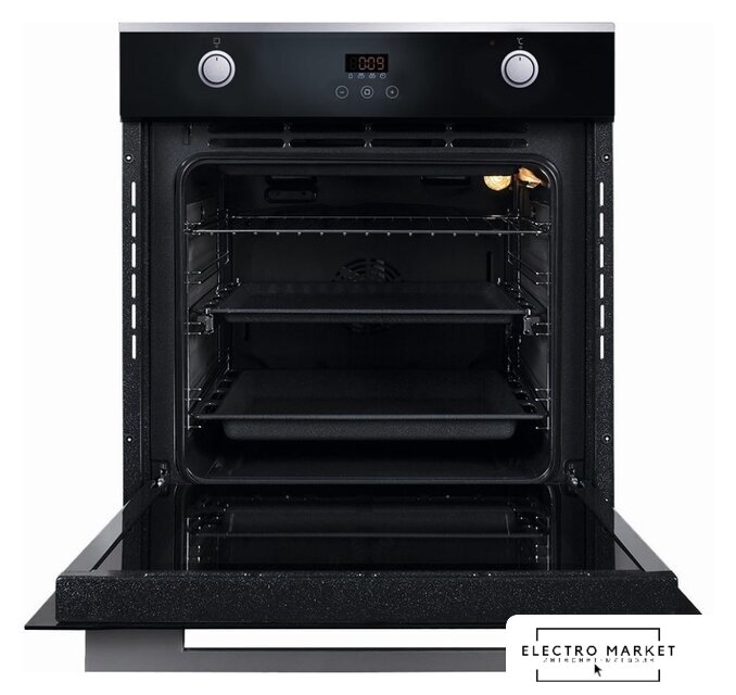 электрический с конвекцией, объем 65 л, 8 режимов, очистка паровая, 2 стекла в дверце, направляющие проволочные + телескопические (1 уровень)