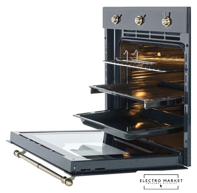 электрический с конвекцией, объем 65 л, 8 режимов, очистка каталитическая, проволочные направляющие, телескопические направляющие