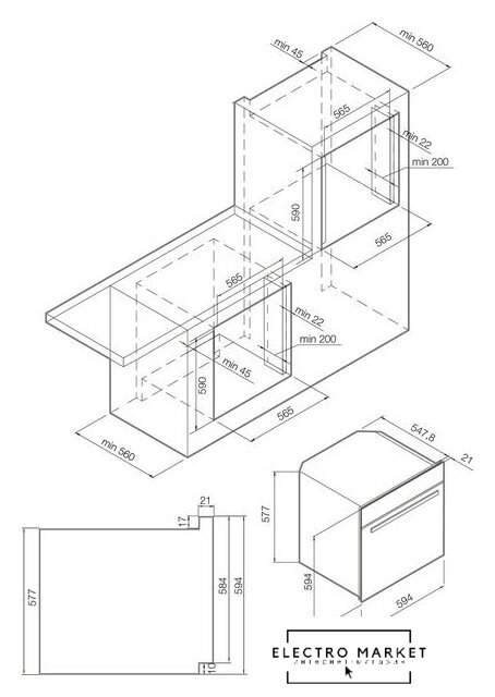 электрический с конвекцией, объем 65 л, 8 режимов, очистка ручная, проволочные направляющие, телескопические направляющие, энергопотребление A