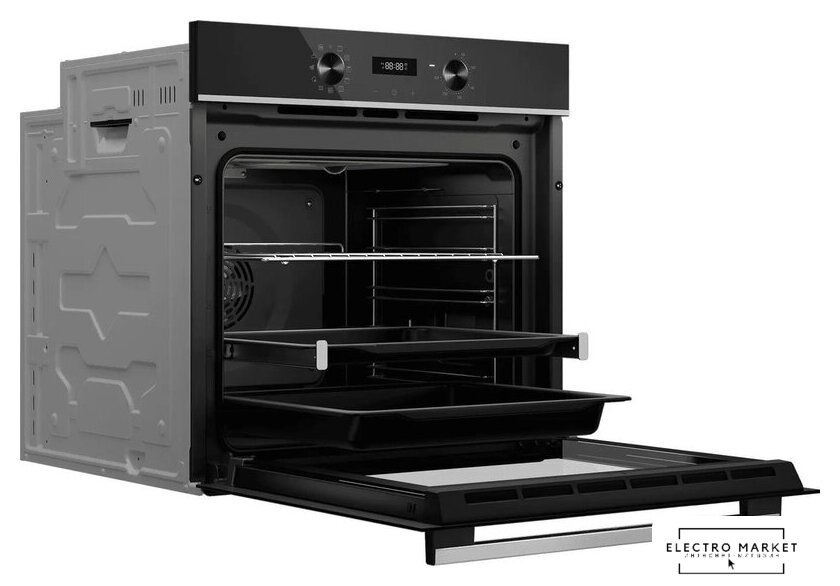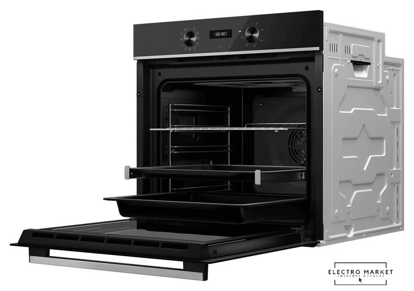 электрический с конвекцией, объем 70 л, утапливаемые переключатели, 7 режимов, очистка паровая, 2 стекла в дверце, направляющие проволочные