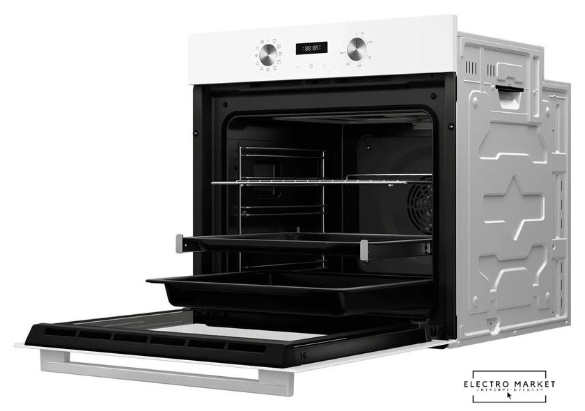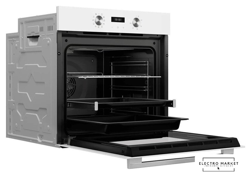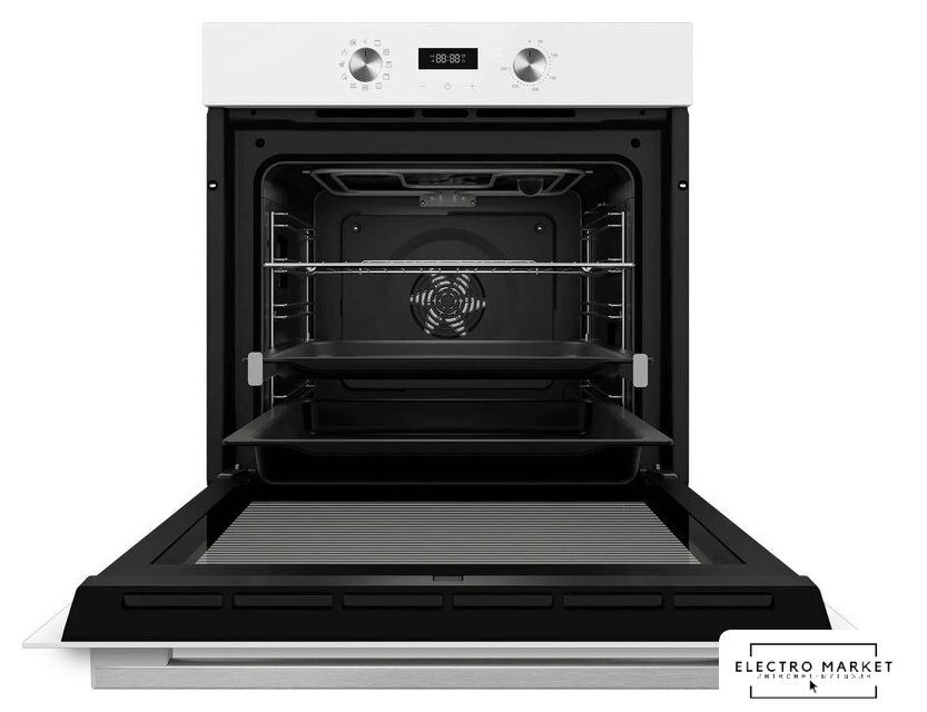 электрический с конвекцией, объем 60 л, утапливаемые переключатели, 10 режимов, очистка паровая, 3 стекла в дверце, направляющие проволочные