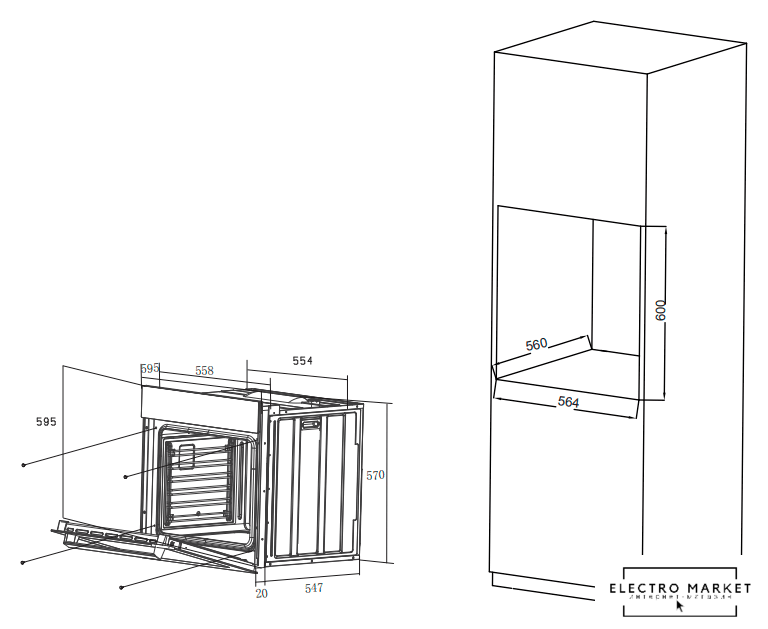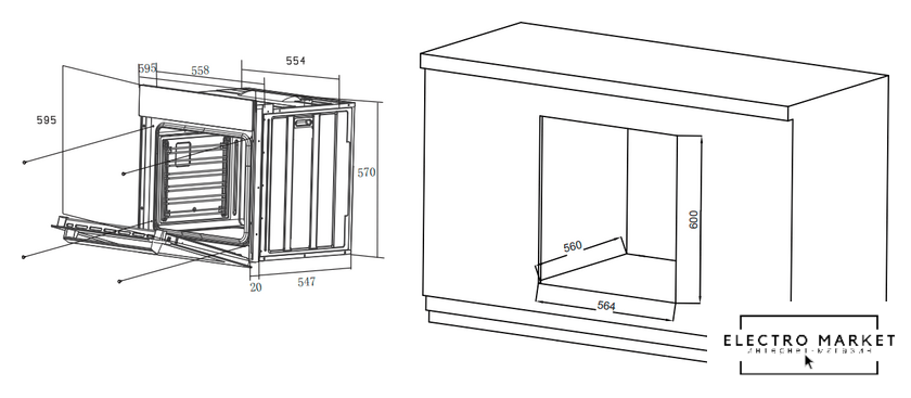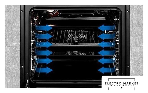 электрический с конвекцией, объем 73 л, 10 режимов, очистка каталитическая, проволочные направляющие, телескопические направляющие, энергопотребление A