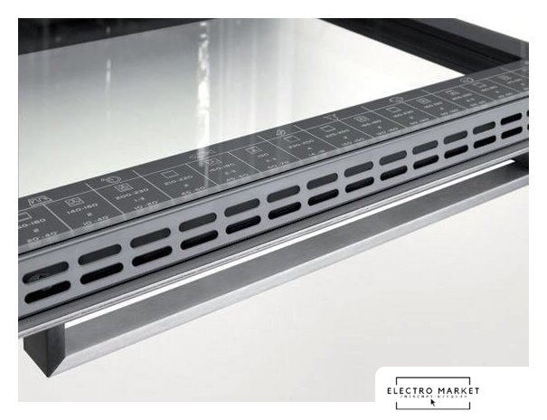 электрический с конвекцией, приготовление на пару, объем 77 л, утапливаемые переключатели, 12 режимов, очистка паровая, 2 стекла в дверце, направляющие проволочные